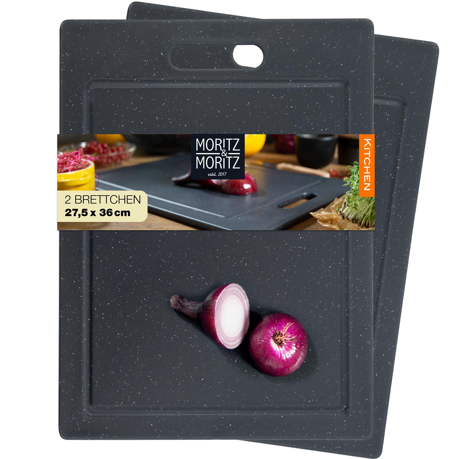 Das Moritz & Moritz 2-teilige Schneidebrett-Set mit Saftrille bietet dir eine perfekte Mischung aus Funktionalität, modernem Design und langlebiger Qualität. Es ist der ideale Begleiter für die hygienische Zubereitung von Speisen und vielseitig in der Küche einsetzbar.
