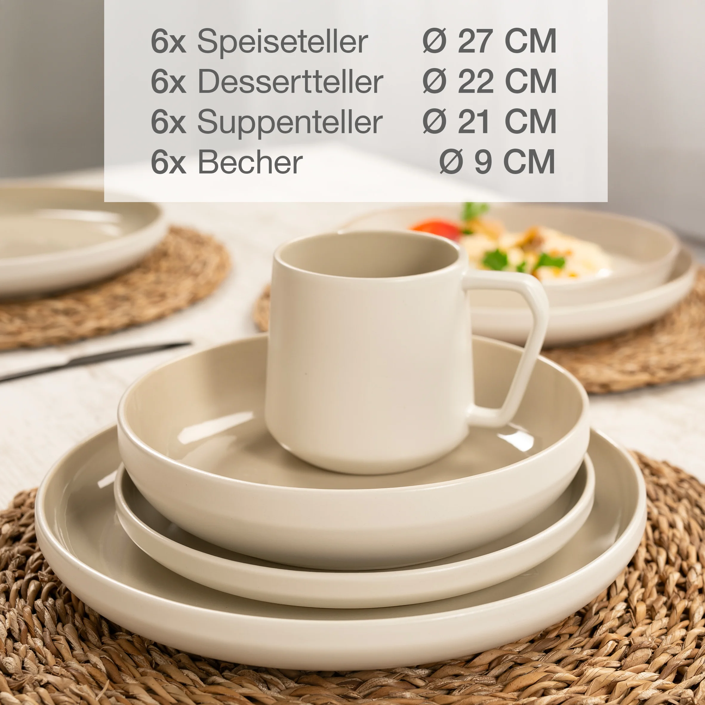 CAVO Geschirrset 24-teilig Sand – Modernes Tafelservice für stilvolle Tafeln