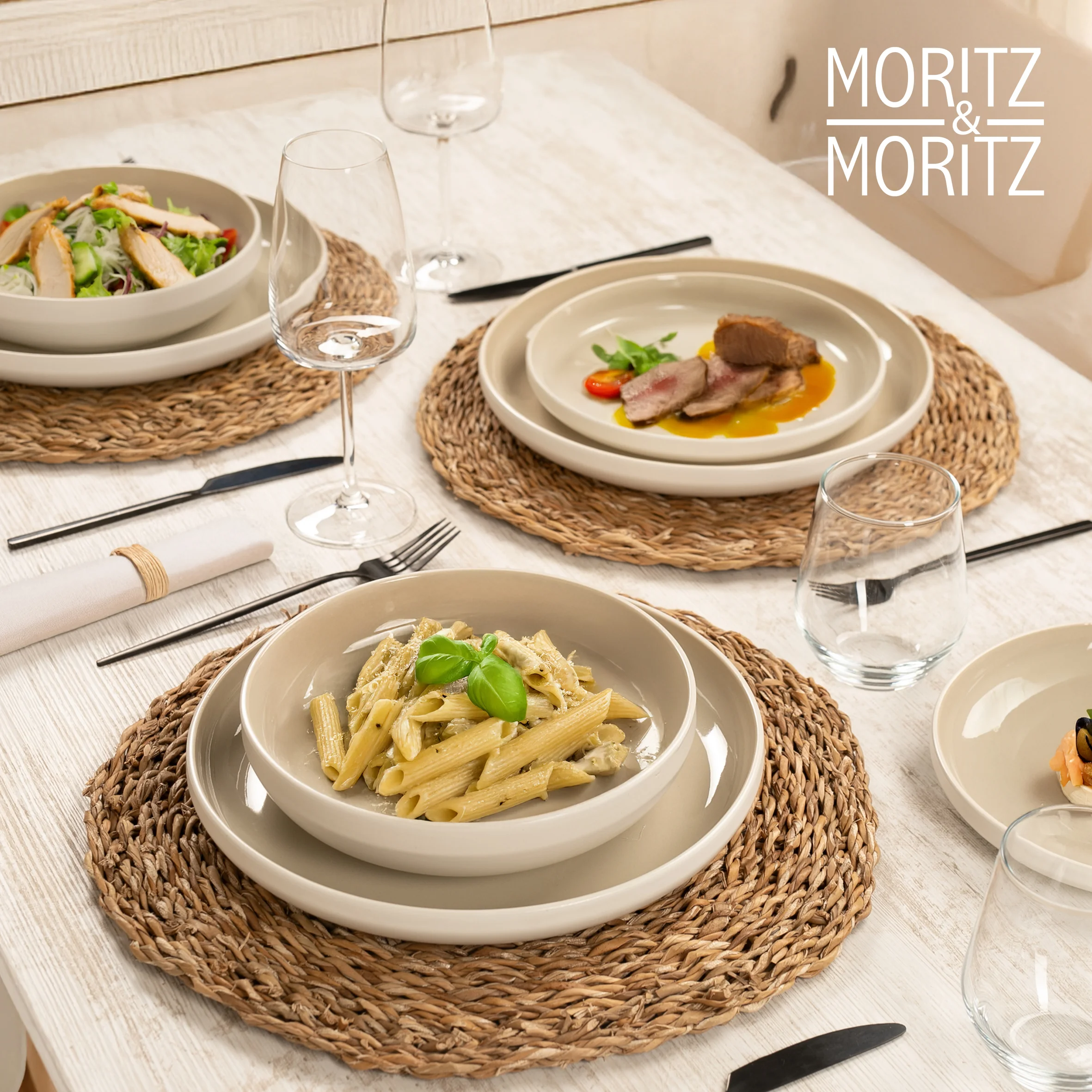 Das CAVO Geschirrset 24-teilig in Sand von Moritz & Moritz ist die perfekte Kombination aus skandinavischem Minimalismus und robustem Steinzeug. Mit seiner warmen Sandfarbe und der matten Oberfläche verleiht es jedem Tisch eine zeitlose Eleganz – ideal für Frühstück, Dinner oder festliche Anlässe.