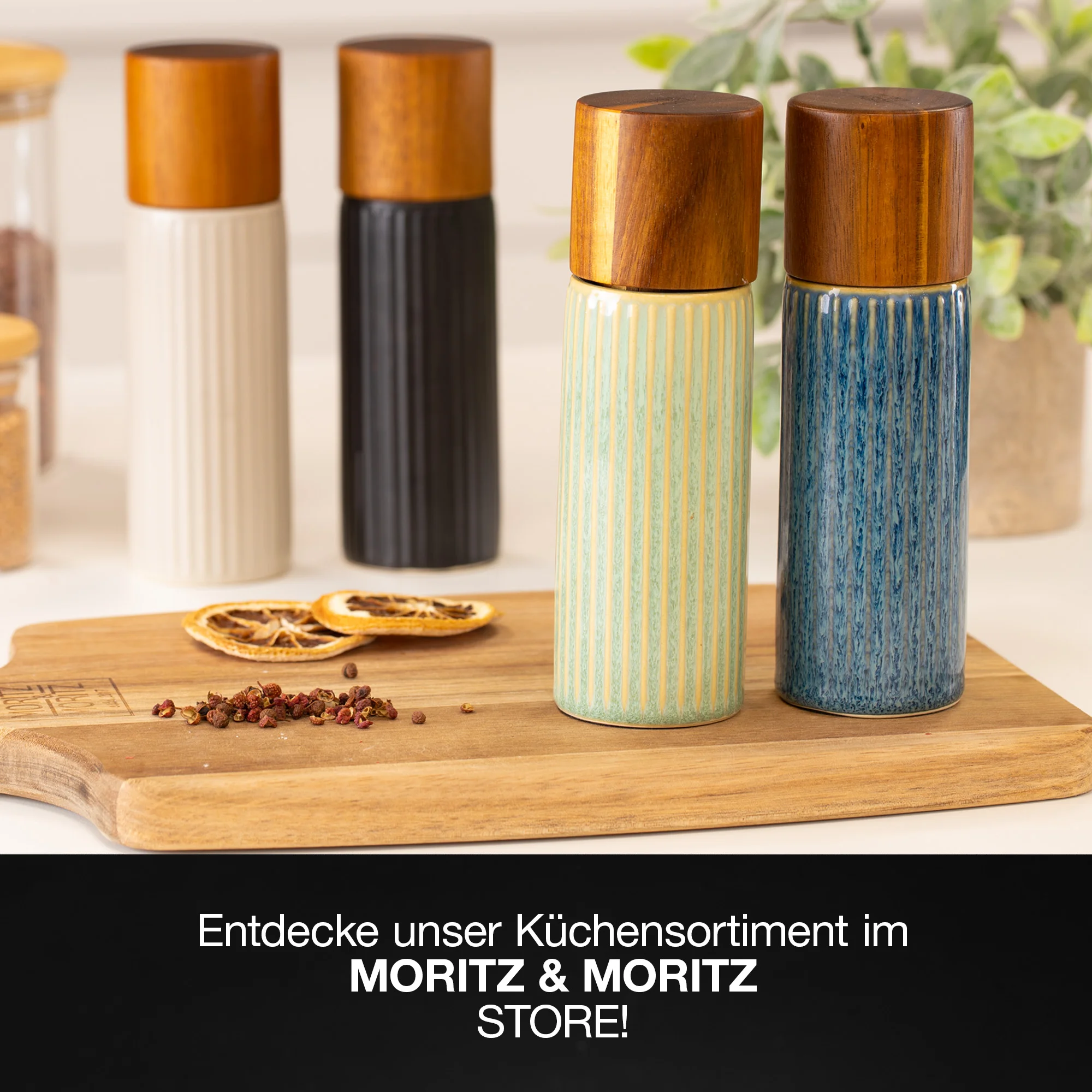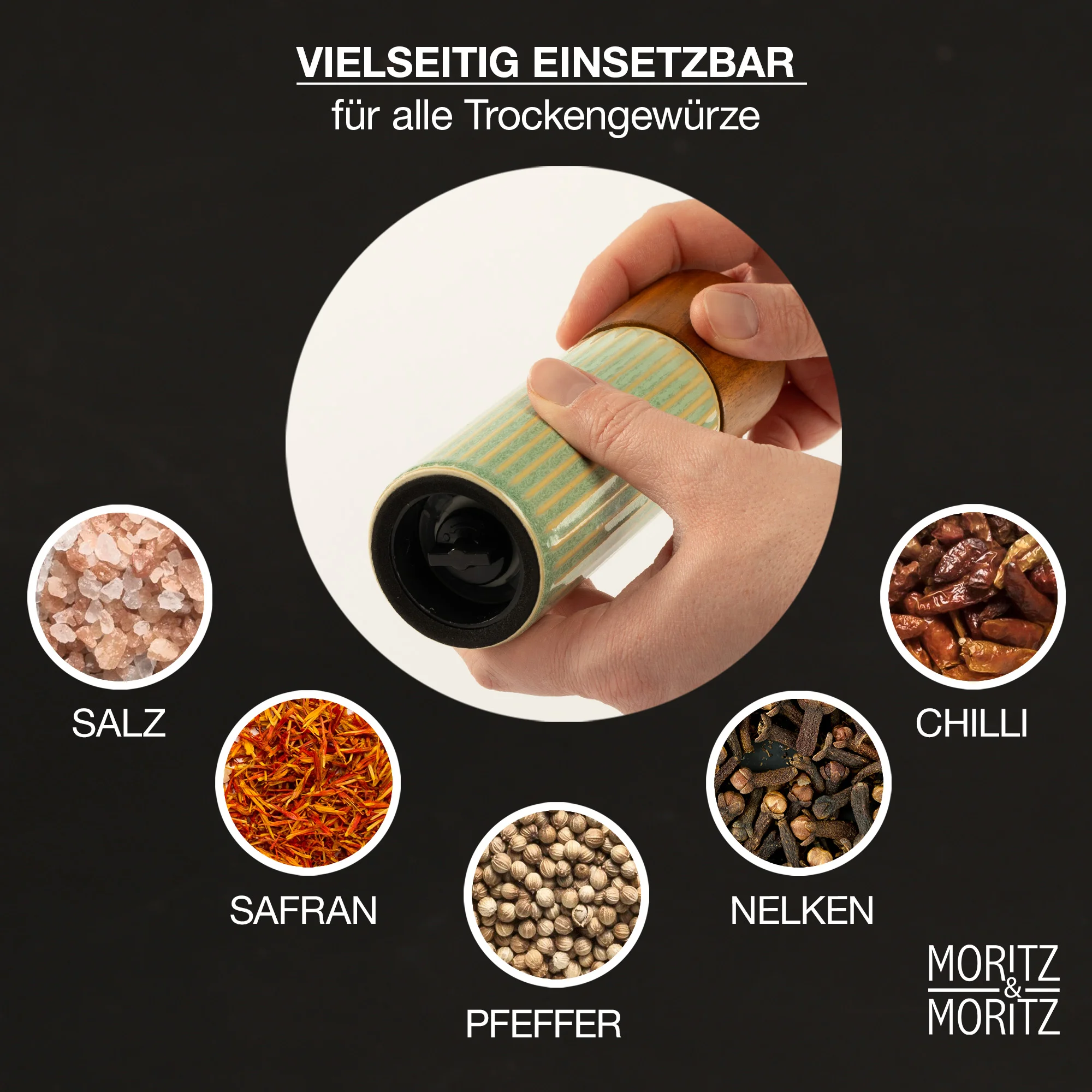 Gewürzmühlen mit einstellbarem Keramikmahlwerk für Salz, Pfeffer & mehr