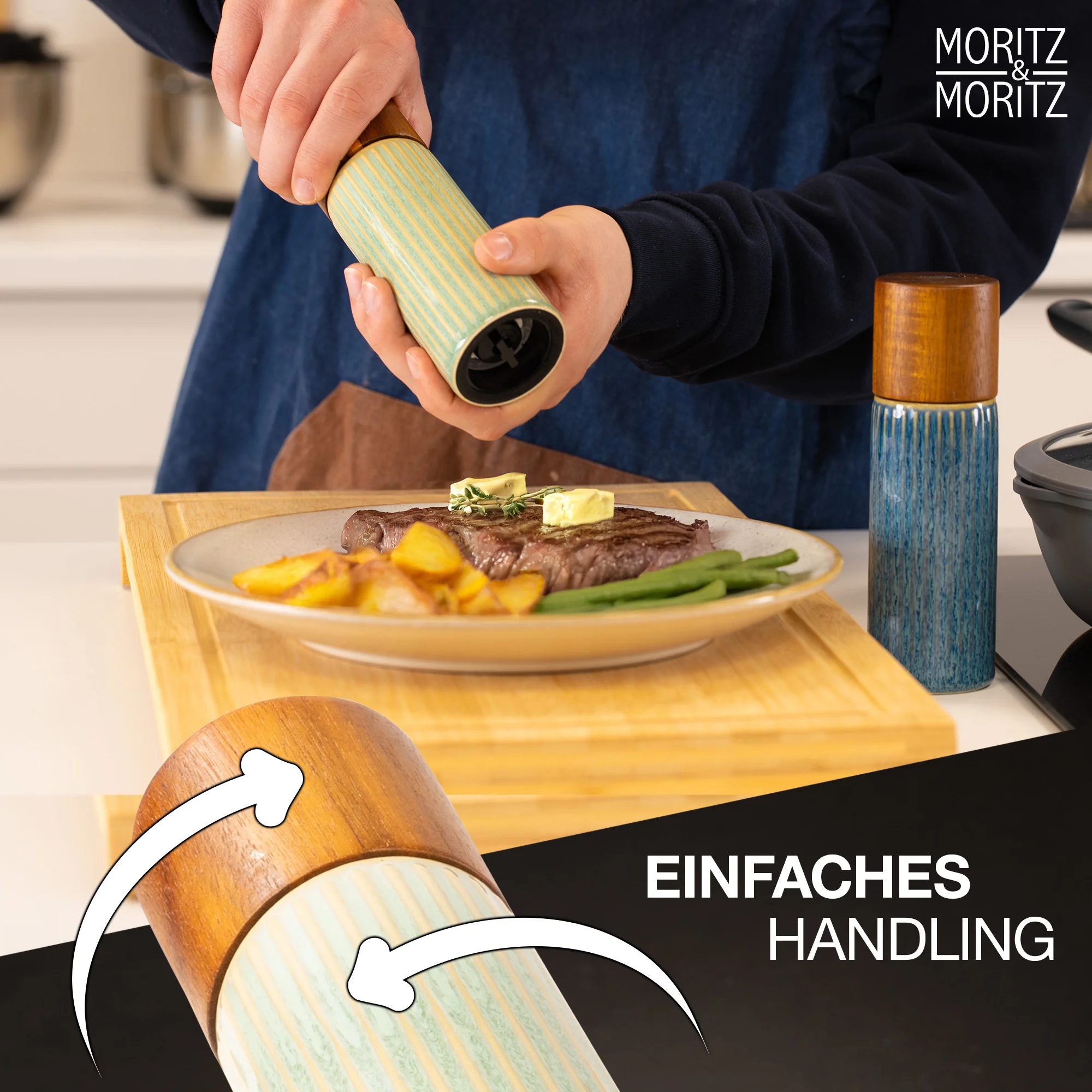 Dank der ergonomischen Form liegt die Mühle angenehm in der Hand und ermöglicht eine komfortable Nutzung. Das Mahlwerk arbeitet zuverlässig ohne Verstopfen oder Nachrieseln, während sich die Mühlen schnell und sauber nachfüllen lassen.