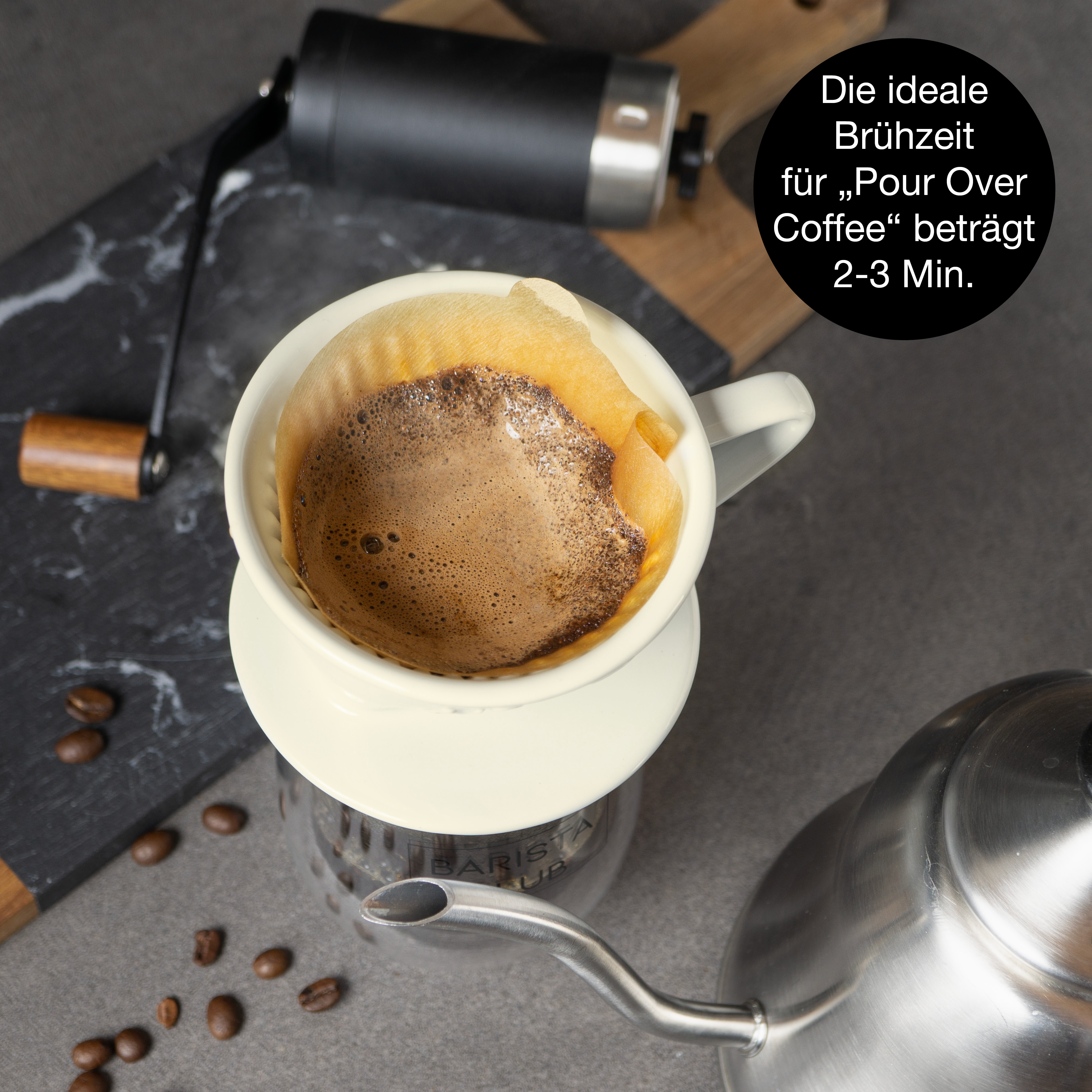 Erlebe den Charme der klassischen Kaffeezubereitung neu: Einfach den Filter mit einer Filtertüte auslegen, gemahlenen Kaffee hinzufügen, mit heißem Wasser übergießen und den unvergleichlichen Duft genießen. Der Handaufguss sorgt für ein besonders intensives Aroma und macht jeden Kaffee zum Genussmoment.