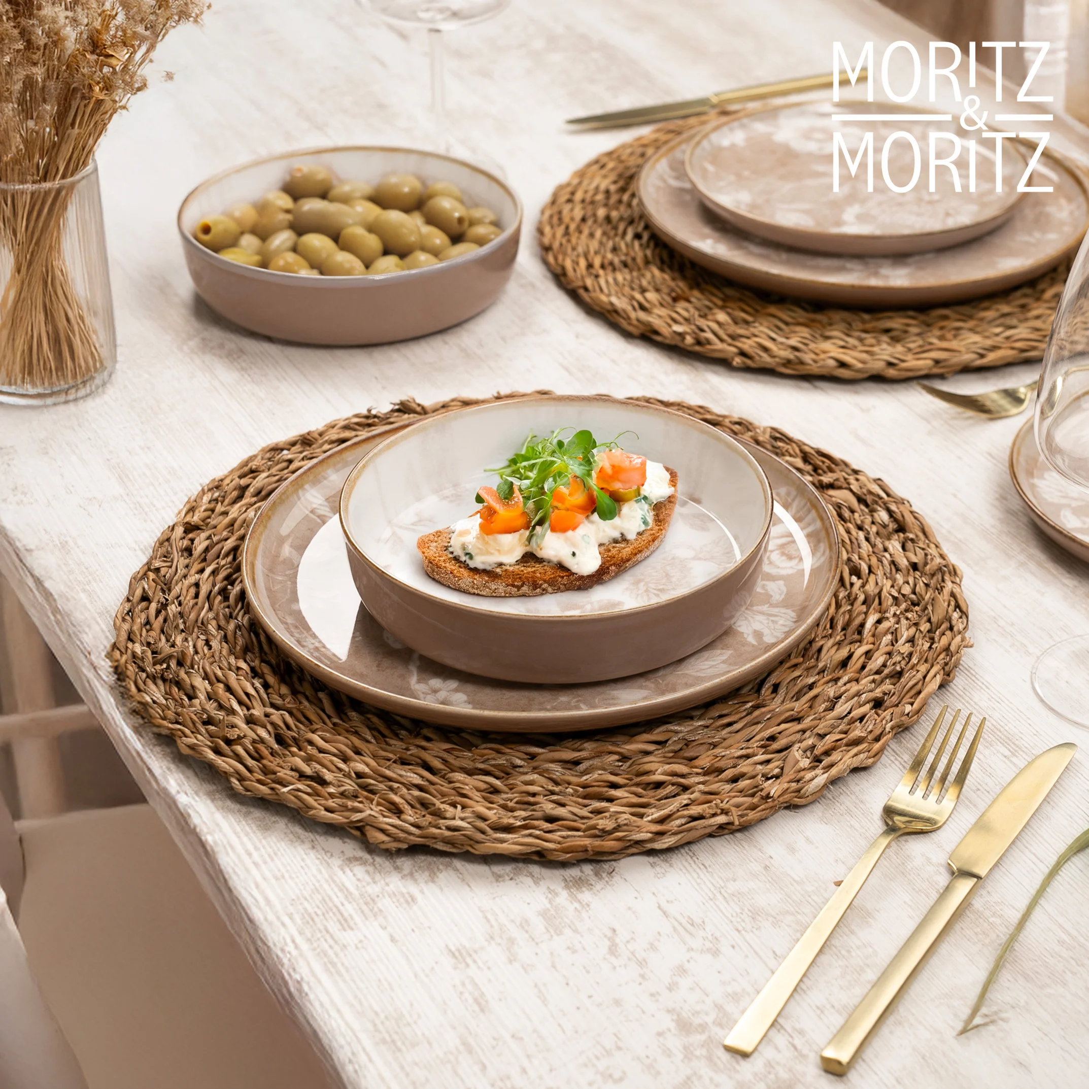 Das Moritz & Moritz MARIELLA Geschirrset 24-teilig ist die perfekte Kombination aus Funktionalität und Design. Mit seinem sanften Beigeton und dem dezenten Blumenmuster verleiht es deinem Tisch eine entspannte und stilvolle Atmosphäre – ideal für alle, die einen cleanen Look mit warmer Note lieben.