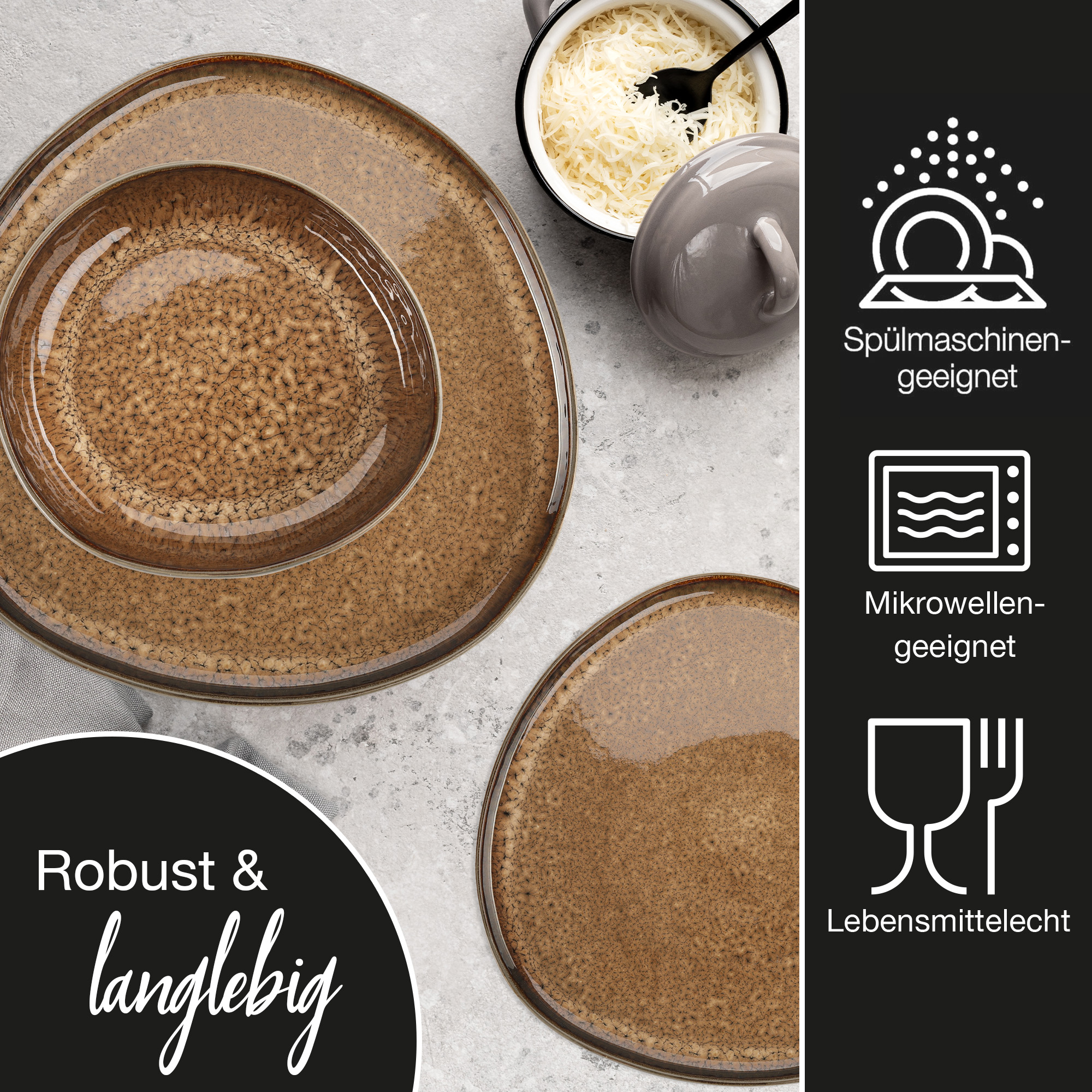 - Eigenschaften: Spülmaschinengeeignet, mikrowellengeeignet, robust, langlebig
