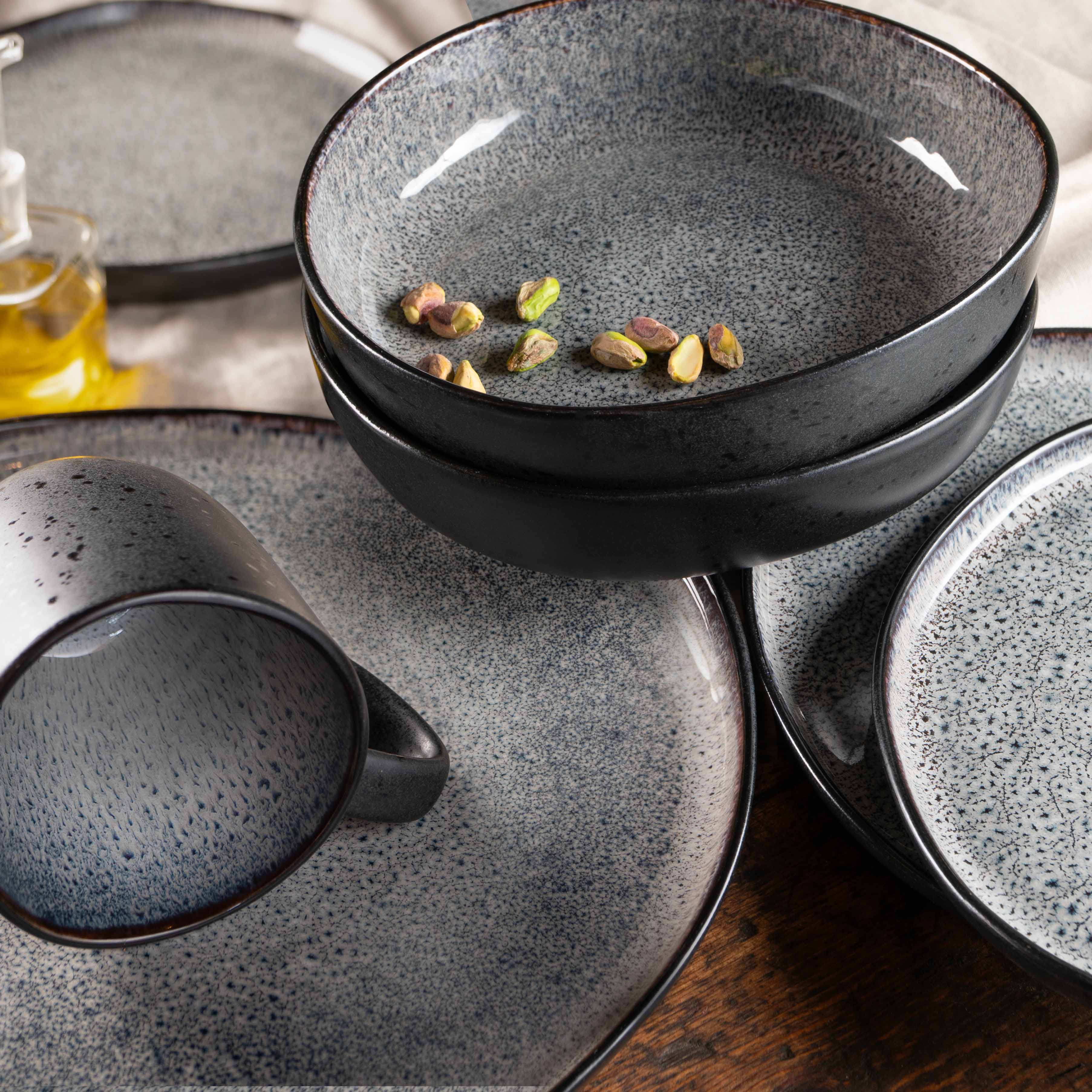 Hergestellt aus robustem Steinzeug ist das Geschirr besonders widerstandsfähig, spülmaschinengeeignet und mikrowellenfest – perfekt für den täglichen Einsatz ebenso wie für besondere Anlässe.