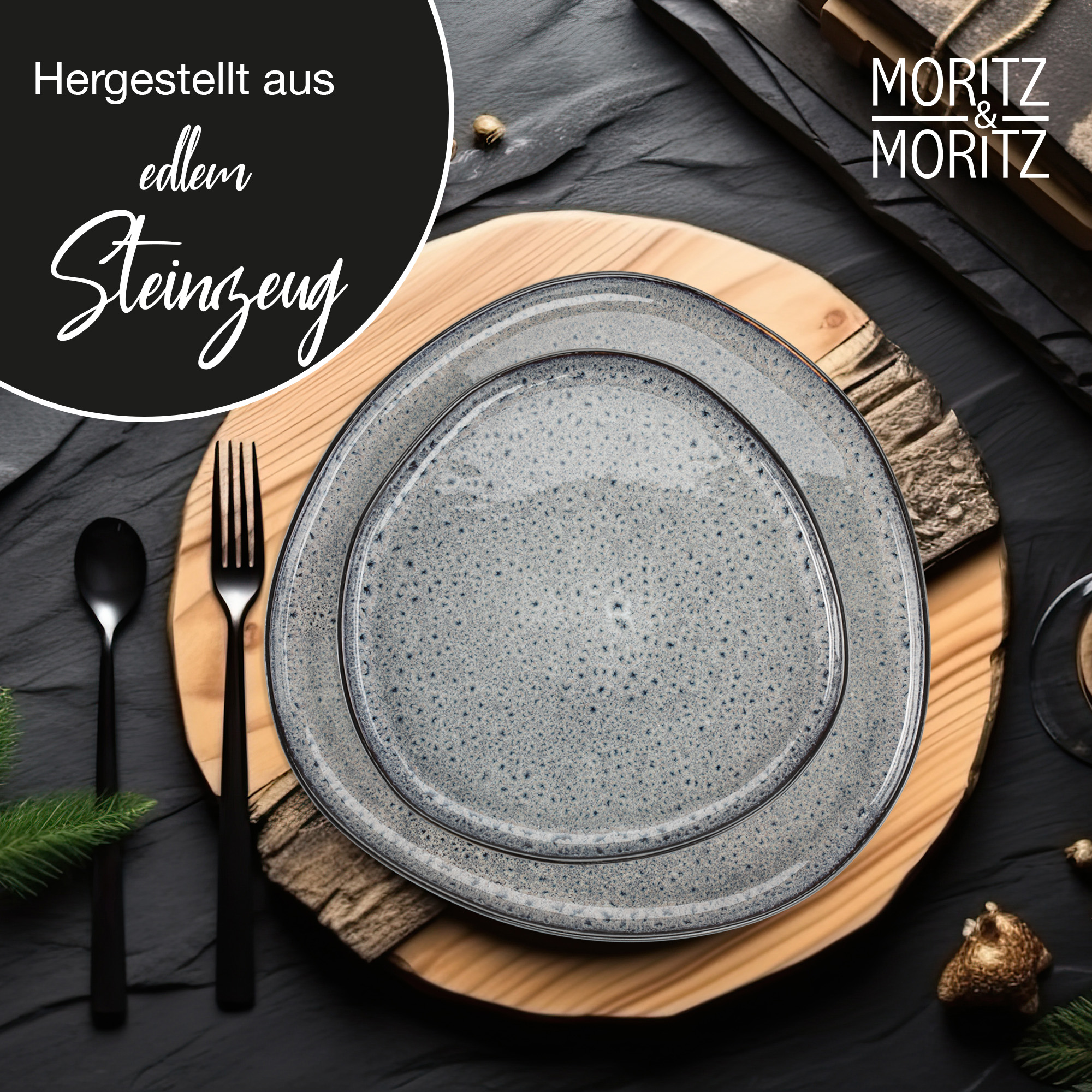 Das Moritz & Moritz ORGANIC Geschirrset in Grau steht für reduzierte Eleganz, moderne Natürlichkeit und maximale Alltagstauglichkeit. Die ruhige graue Glasur in Kombination mit der organischen Formensprache verleiht deinem Tisch einen zeitlosen, stilvollen Look – perfekt für alle, die minimalistisches Design mit Charakter lieben.