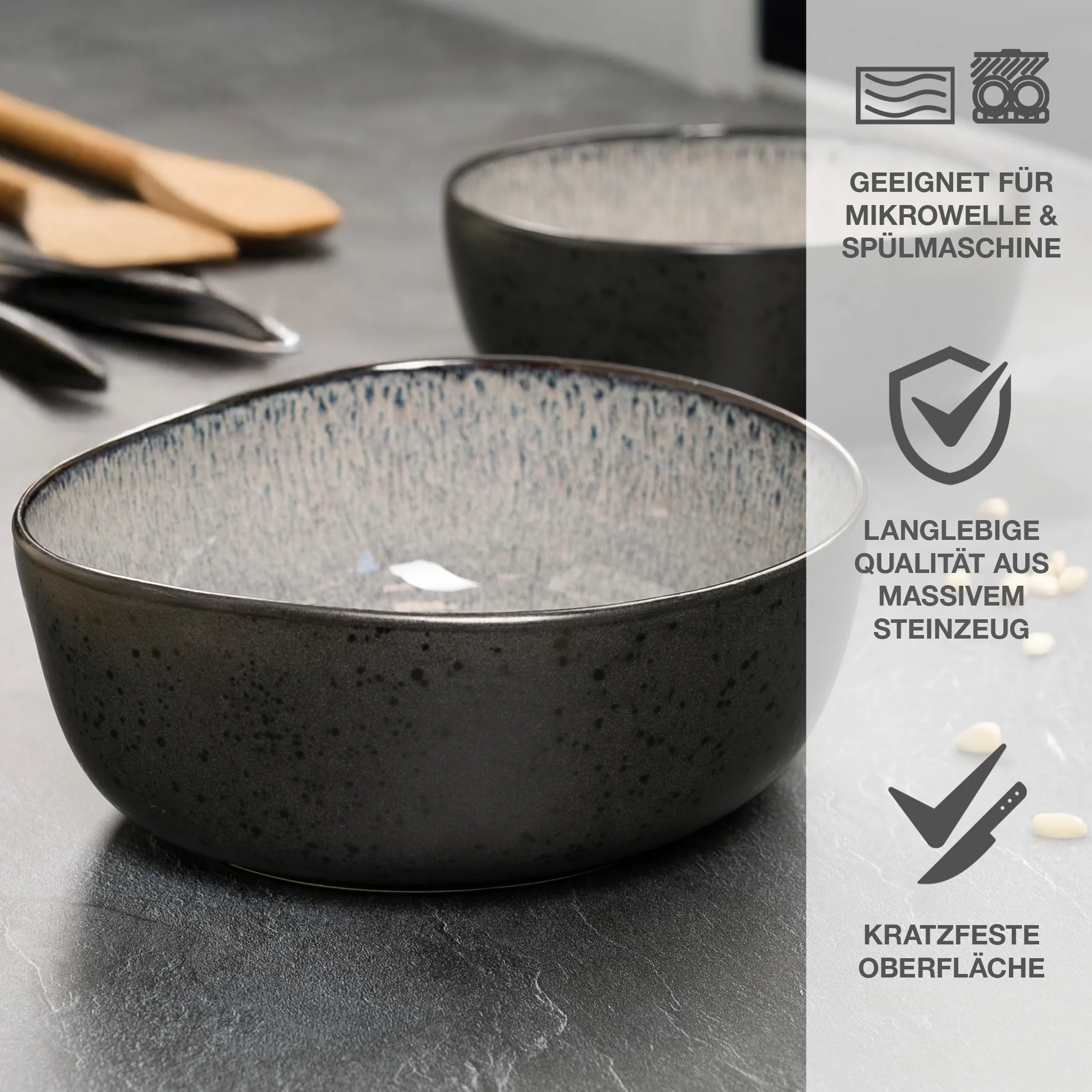 Das elegante Grau mit matter Glasur sorgt für eine edle, zeitlose Optik, die sowohl zu modernen als auch klassischen Tischdekorationen passt. Ideal für den täglichen Gebrauch oder besondere Anlässe – diese Schalen machen überall eine gute Figur.
