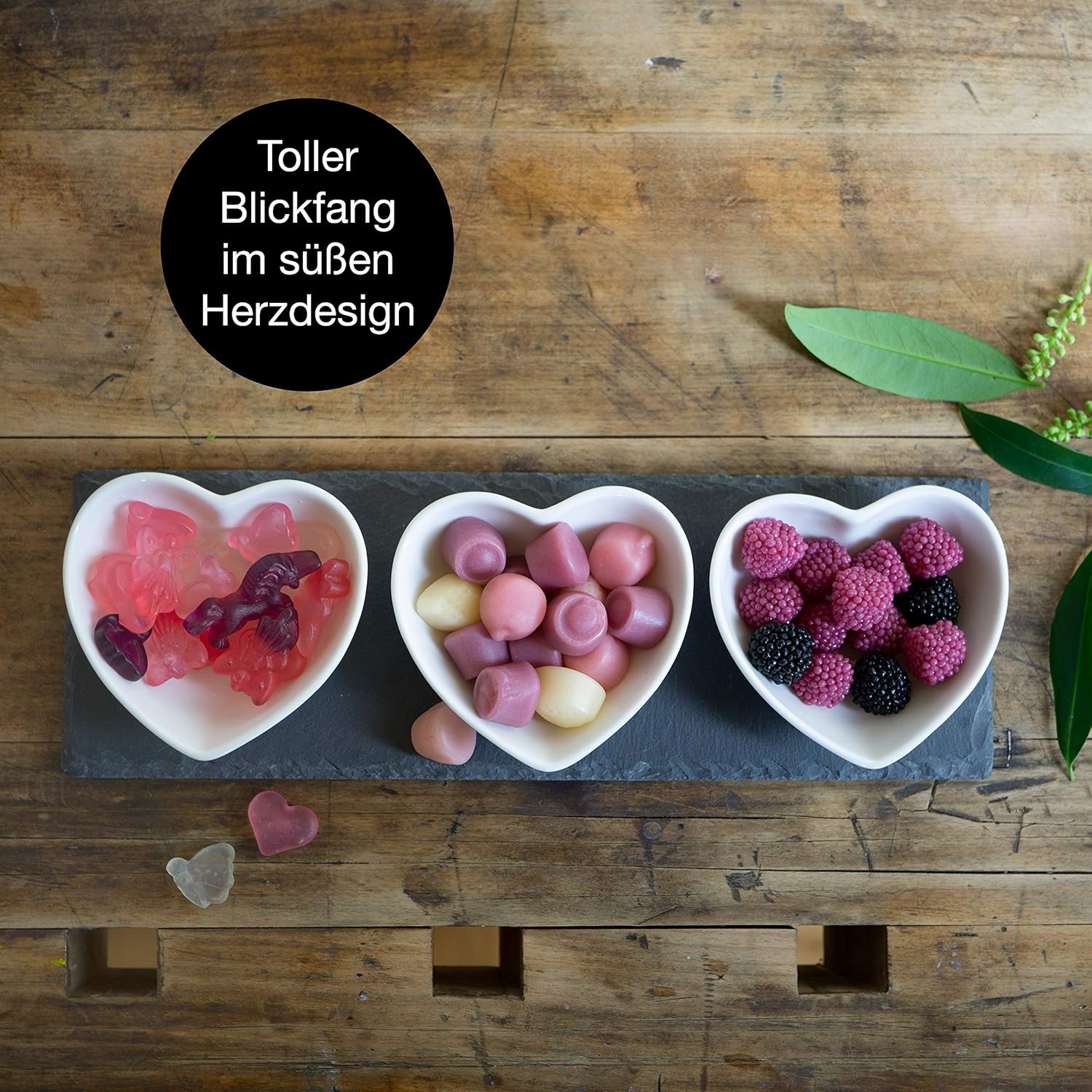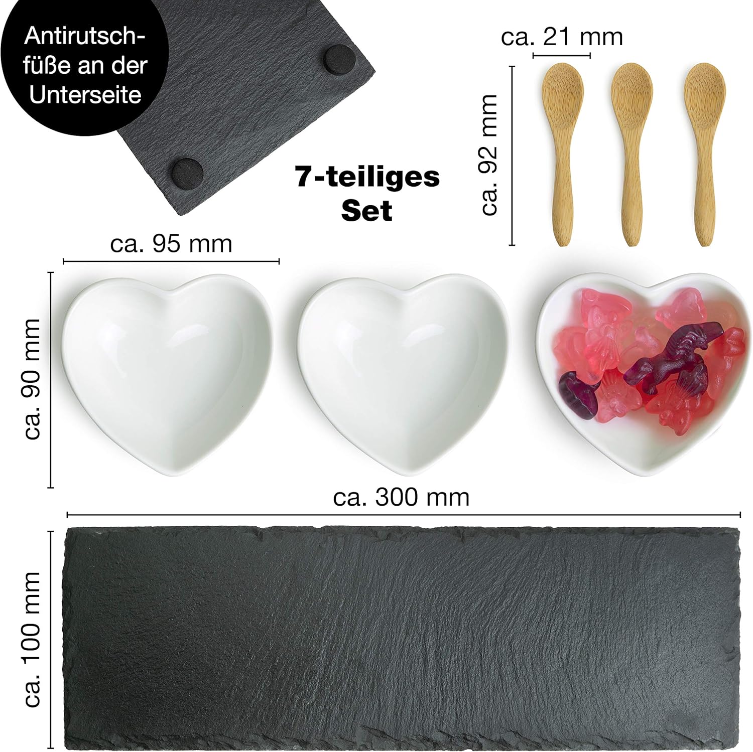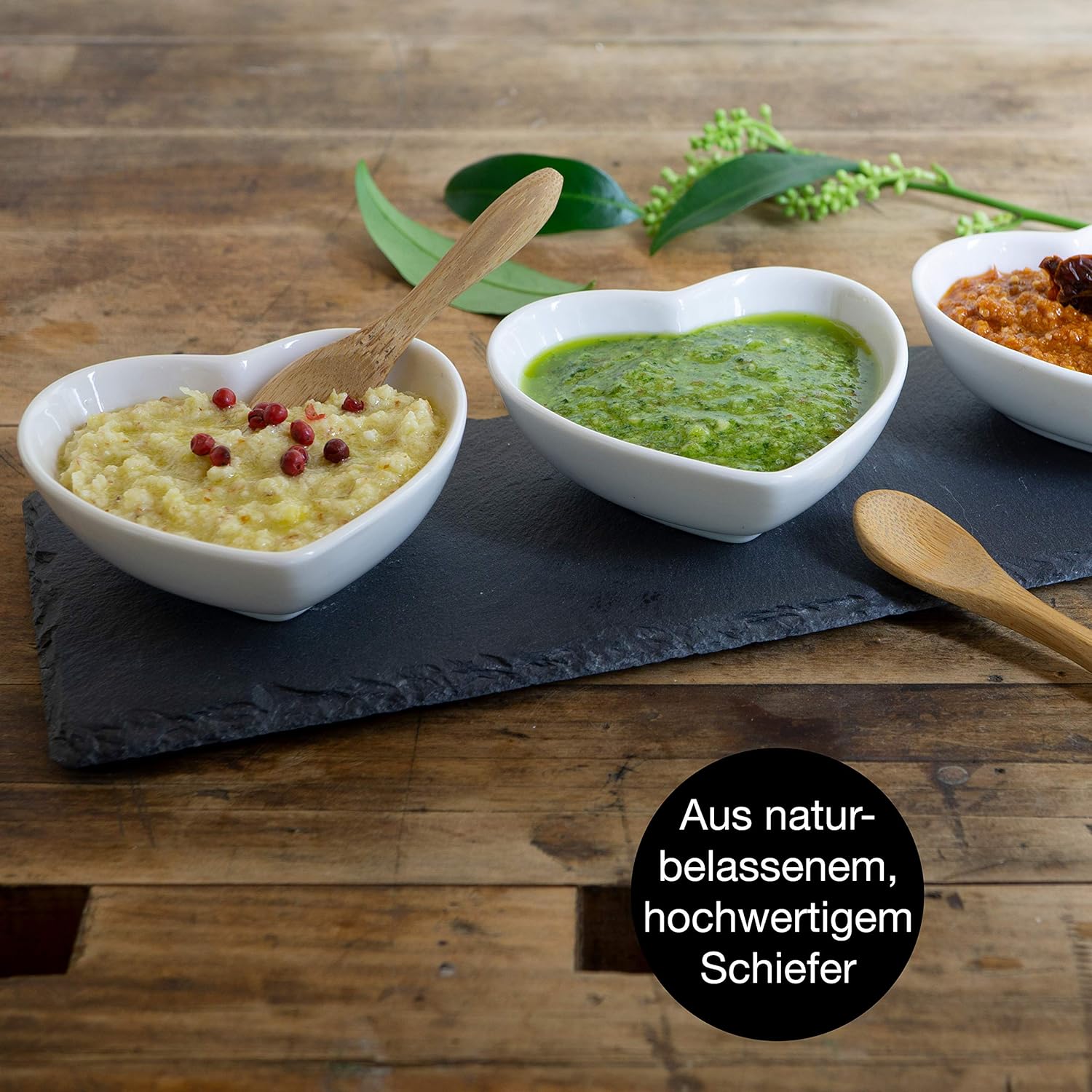 Schieferset Bay Leaf – Schieferplatte mit 3 Herz Schalen