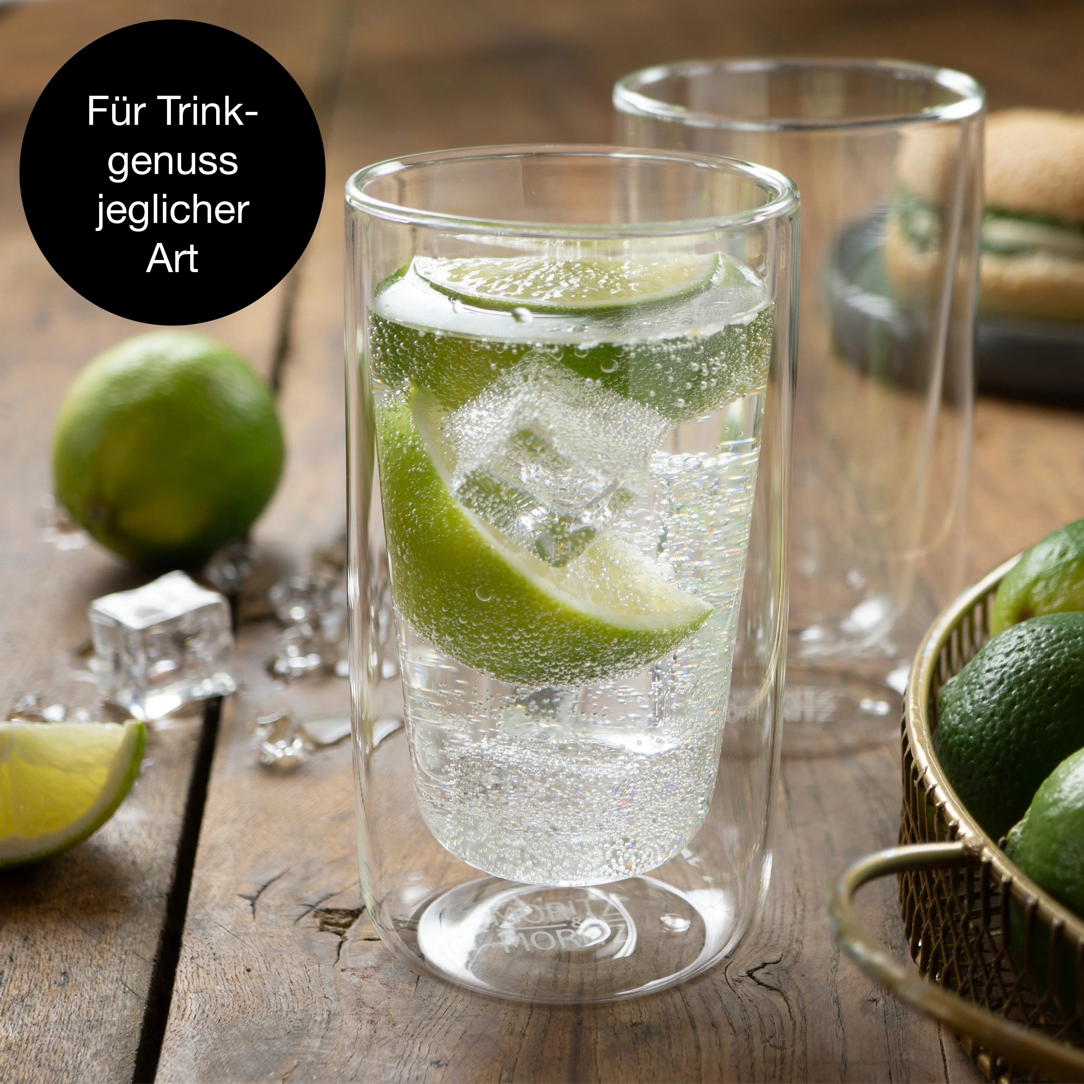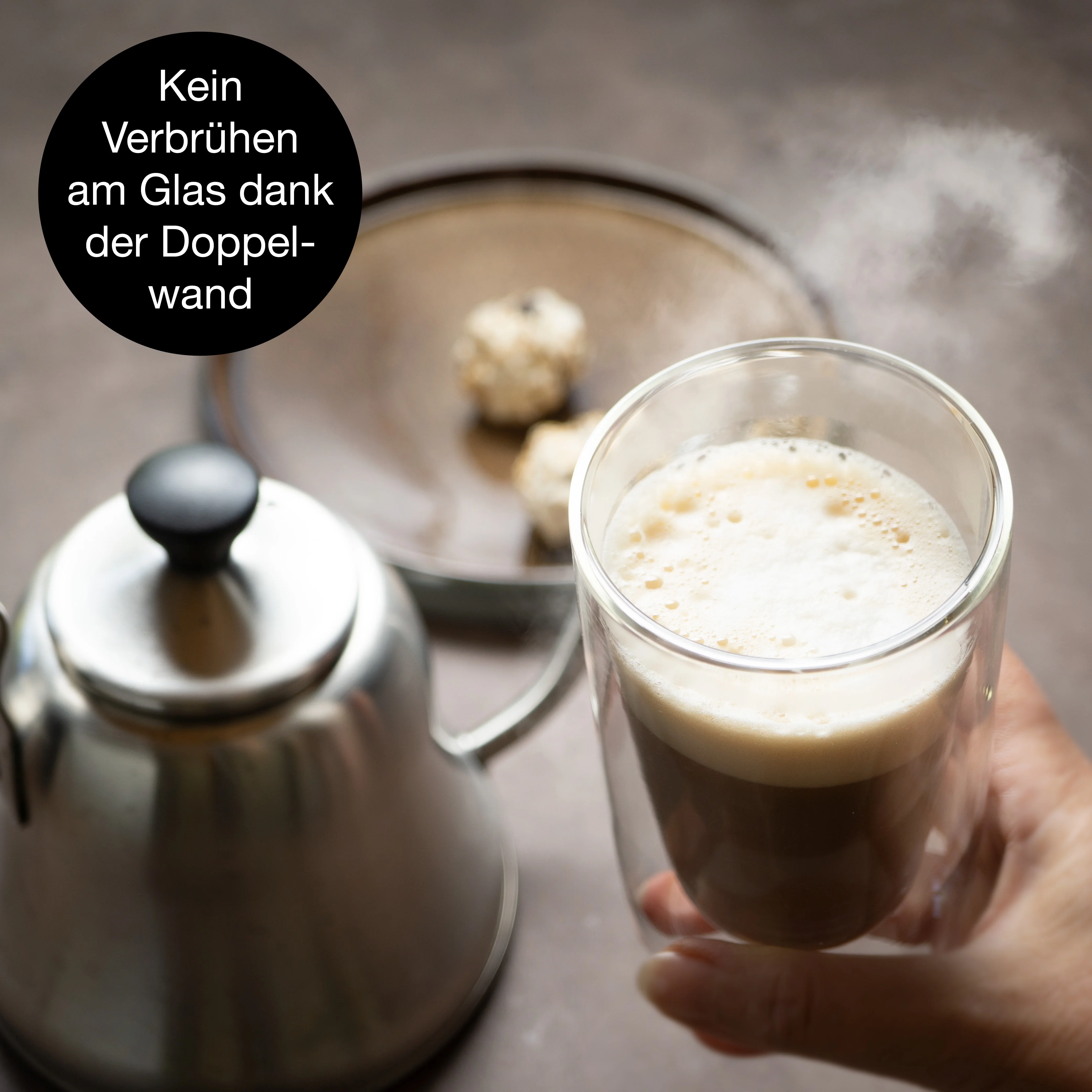 Dank der doppelwandigen Bauweise bleiben heiße Getränke länger warm und kalte länger kühl, ohne dass du das Glas von außen heiß oder feucht in der Hand hältst. Das macht sie perfekt für den Alltag, fürs Homeoffice oder gemütliche Abende mit Freunden.