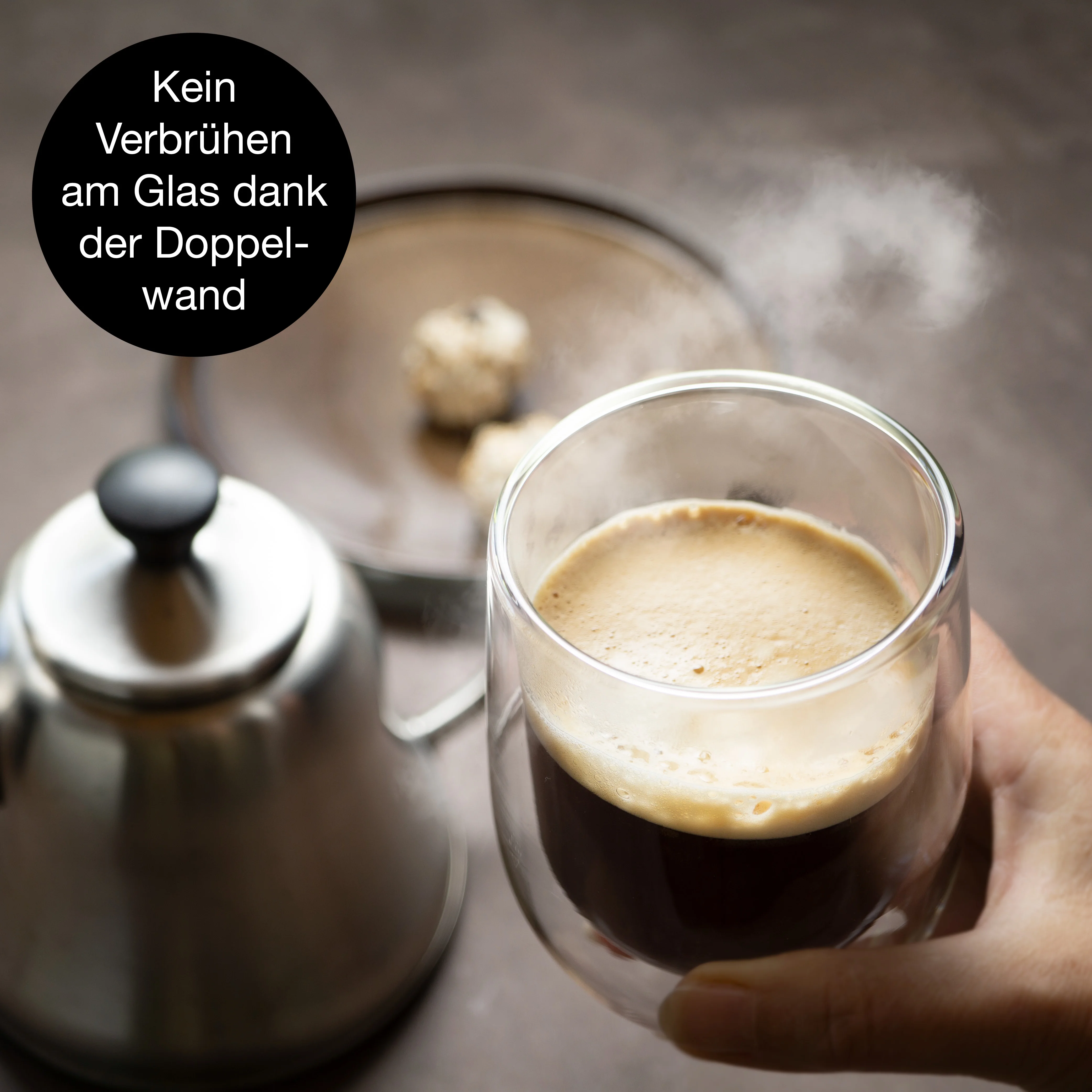 Gefertigt aus hitzebeständigem Borosilikatglas, sind die Thermogläser robust, langlebig und pflegeleicht. Dank der isolierenden Schicht bleibt die Außenseite stets angenehm temperiert – ideal für den täglichen Gebrauch oder stilvolle Gästebewirtung.