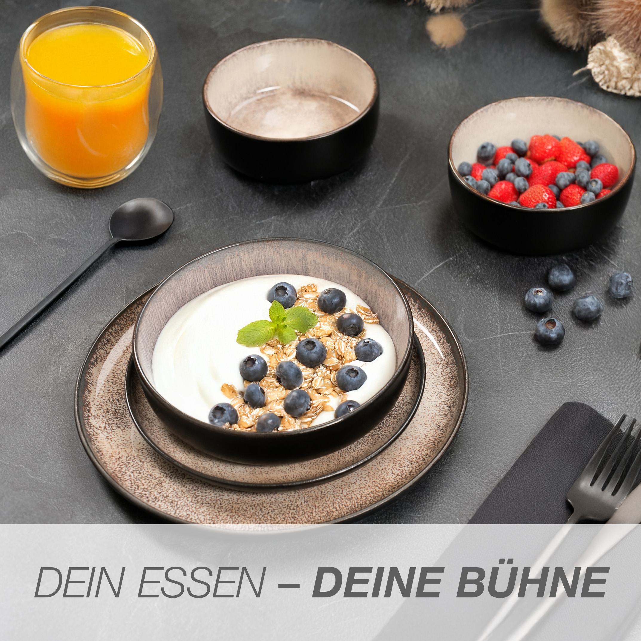 Mit insgesamt 24 Teilen bietet das Set eine vollständige Ausstattung für 6 Personen. Neben Speise-, Dessert- und Suppentellern ergänzen Müslibowls das Set funktional und flexibel. Sie eignen sich nicht nur für Müsli, sondern auch für Bowls, Salate, Suppen, Desserts oder Snacks – perfekt für einen modernen Essalltag mit wechselnden Anforderungen.