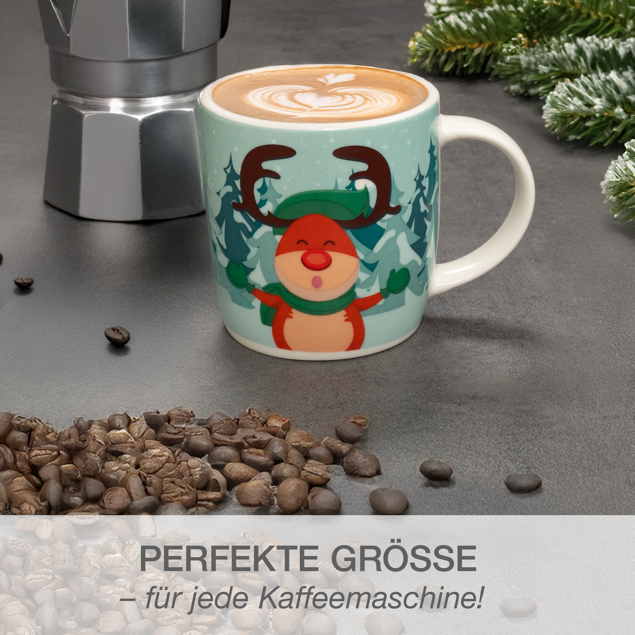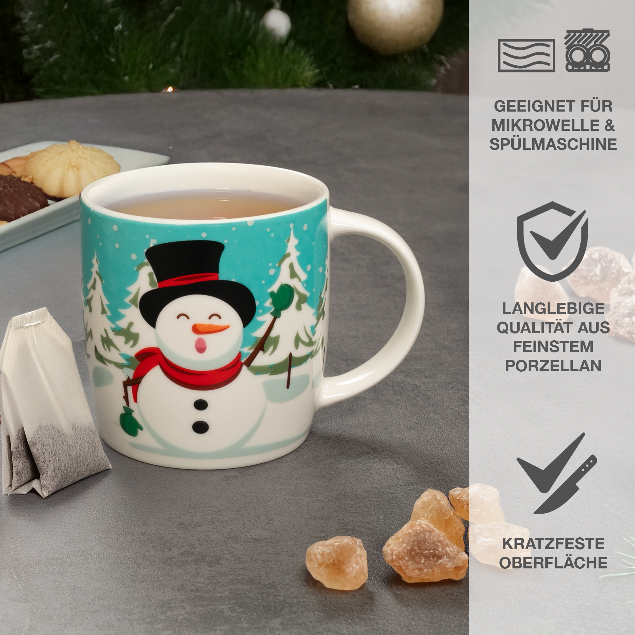 Die Becher bestehen aus robustem, hochwertigem Porzellan und liegen angenehm in der Hand. Sie sind spülmaschinen- und mikrowellengeeignet, wodurch sie sich besonders leicht im Alltag integrieren lassen – perfekt für den täglichen Einsatz in der Adventszeit.